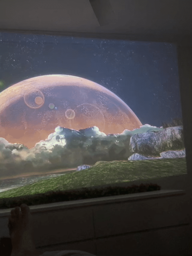 Super simple. Just plug it in, connect to Wi-Fi, and adjust the focus. With 180° flexible projection, you can project on your wall, ceiling, or any flat surface — perfect for transforming any room into your own Halo theater.